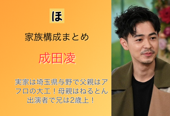 【2026最新】成田凌の家族構成まとめ!実家は埼玉県与野で父親はアフロの大工!母親はねるとん出演者で兄は2歳上!