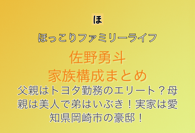 【顔画像】佐野勇斗の家族構成まとめ!父親はトヨタ勤務のエリート?母親は美人で弟はいぶき!実家は愛知県岡崎市の豪邸!